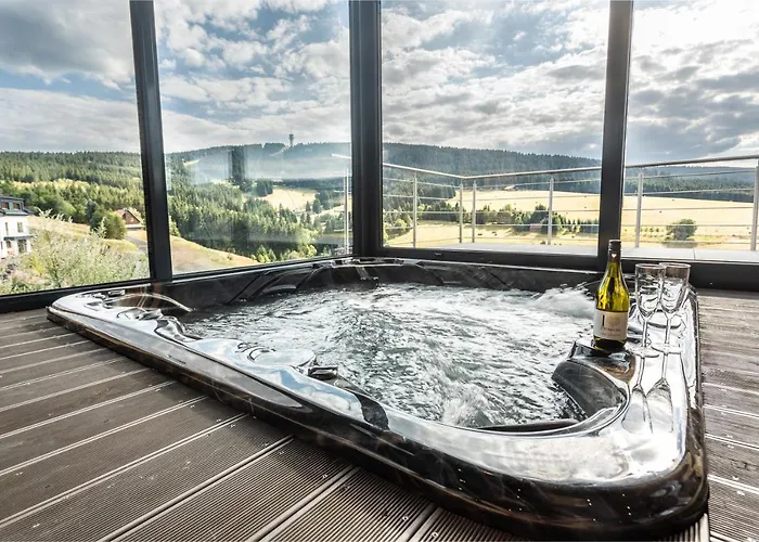 Wellness Villa Klinovec Views i Loučná pod Klínovcem er en 2 værelses indkvartering med en terrasse og udsigt over bjerget. TJ Klinovec-skiliften ligger 25 minutters gang derfra.
